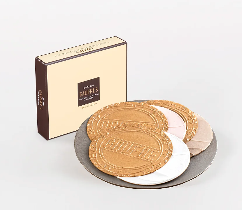 99周年にちなんで作られた、9種類の新しい味わい。食物繊維入りの個性豊かなクリームの美味しさがより引き立つよう、全粒粉を配合した専用のゴーフル生地。神戸風月堂の歴史のなかでも初めてとなる、「ゴーフル生地そのものを新しく作る」という挑戦から誕生したこれまでにないゴーフルを、ぜひ食べ比べてお楽しみください。